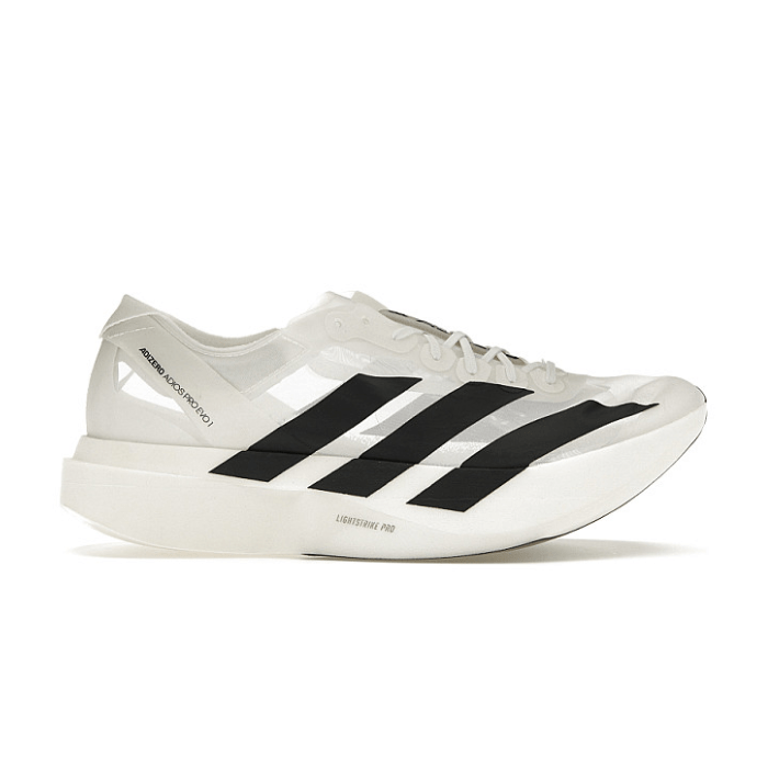 Break records and push limits with the Adidas Adizero Adios Pro Evo 1 White Black?the lightest, fastest racing shoe ever made by Adidas. Engineered for elite performance, this marathon-ready shoe weighs under 138g and features a revolutionary carbon-infused ENERGYRODS 2.0 system that delivers explosive propulsion and reduced energy loss. The sleek White and Black design adds a sharp edge to its performance-driven build. The minimal upper provides a second-skin fit for maximum speed, while the LIGHTSTRIKE PRO foam midsole offers ultra-responsive cushioning with every stride. Whether you’re chasing personal bests or lining up for race day, the Adios Pro Evo 1 is built to dominate.