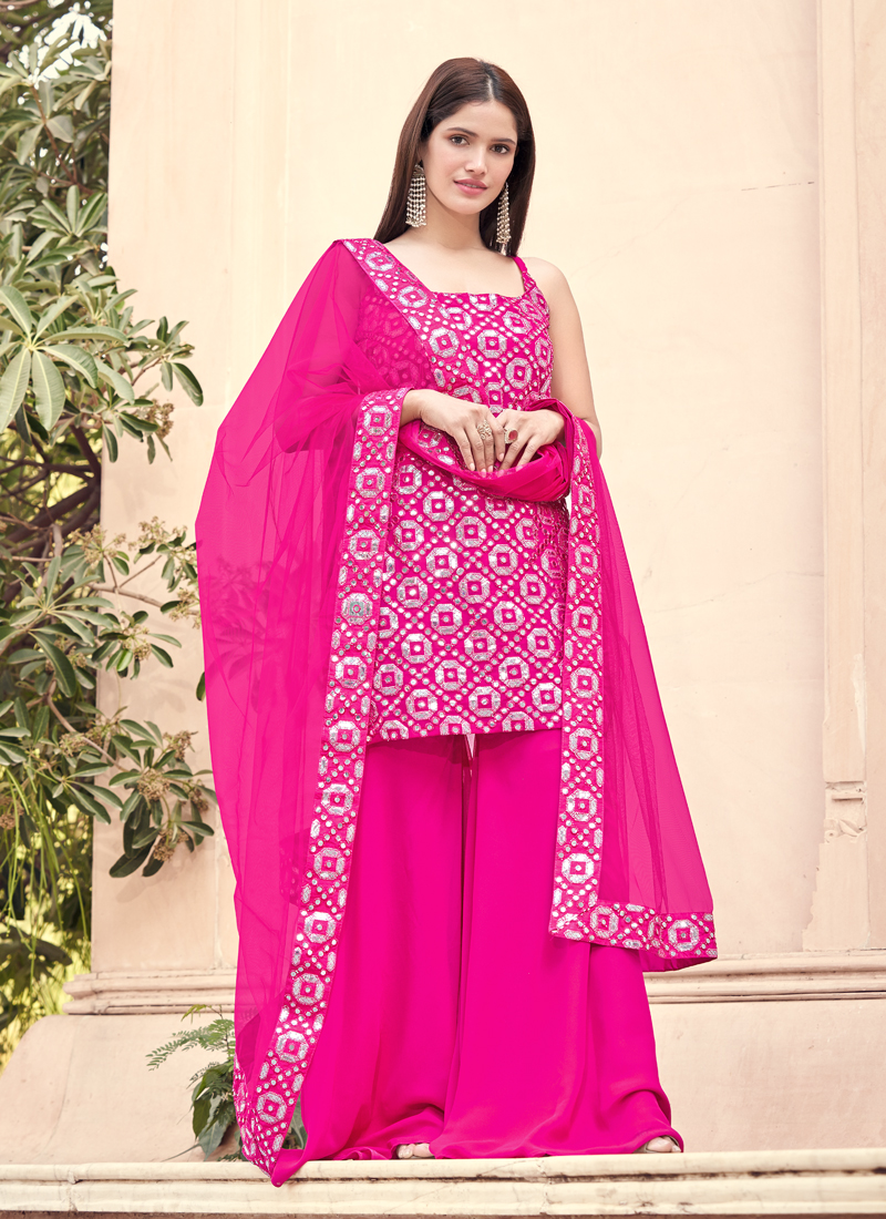 Beautiful Georgette Gota Work Pink Salwar Suit