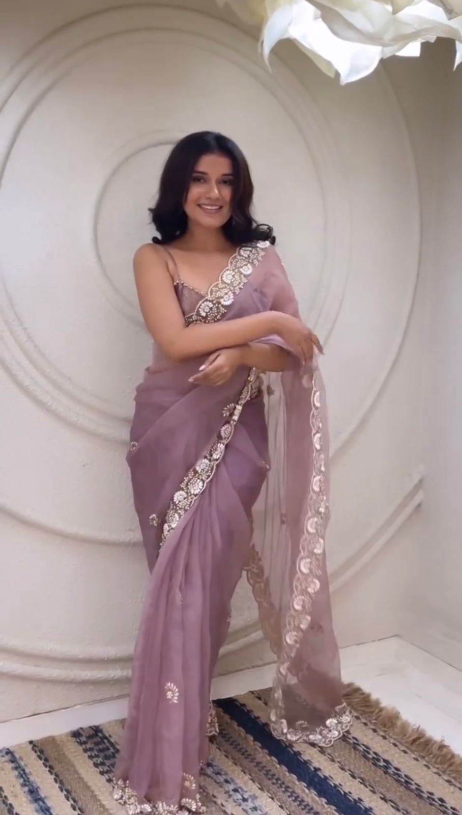 Ideal for weddings, receptions, and festive gatherings, this saree makes a stunning statement with its rich details. The handcrafted floral embroidery is paired with subtle embellishments, giving the saree a luxurious feel. Style it with traditional jewelry for a classic look or go for modern accessories to create a fusion of contemporary and traditional styles.