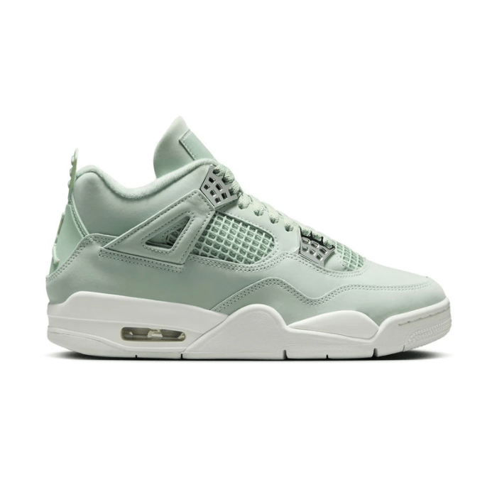 Freshen up your sneaker rotation with the Jordan 4 Retro Seafoam Sail for women, now available at Little Wish. This sleek and stylish pair features a smooth white leather upper, accented by refreshing Seafoam green hits on the eyelets, midsole, and branding for a subtle pop of color. Classic mesh panels and the iconic wings add a timeless Jordan touch, while the cushioned Air unit ensures comfort and support all day long. Whether you?re hitting the streets or styling up a casual fit, this clean, versatile colorway brings a refreshing vibe to your collection. Get yours now at Little Wish!