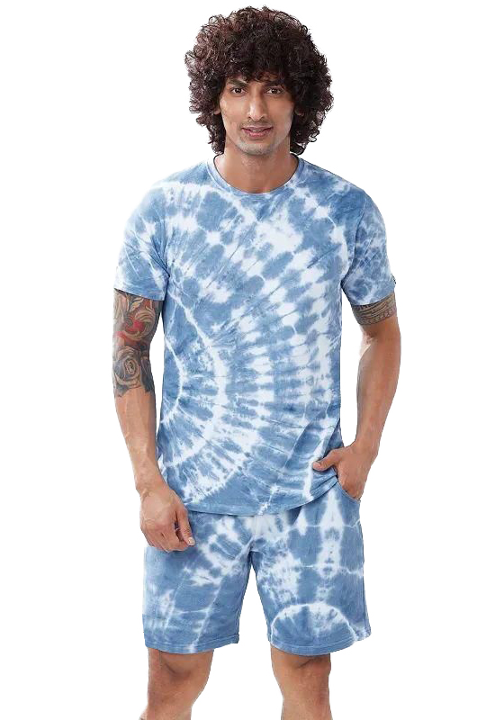 Men's Oversize Cotton Blue Tie Dye Co-Ord Set