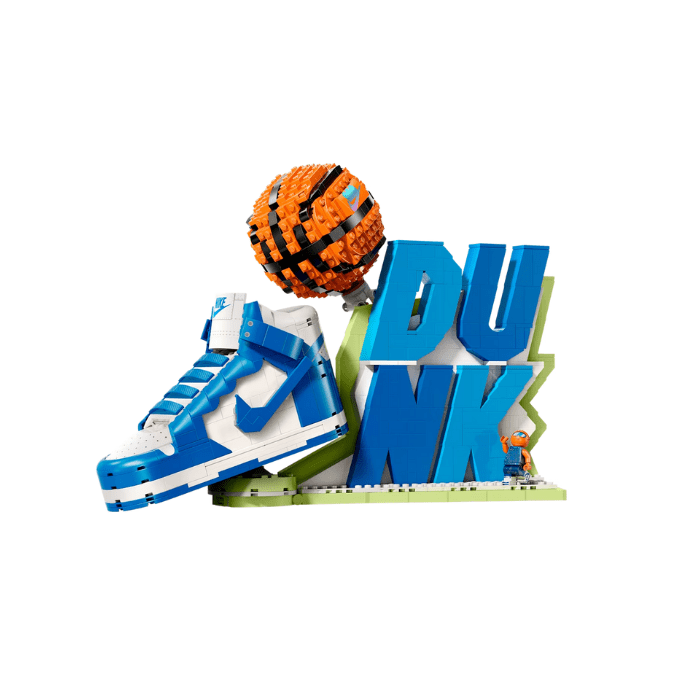 Bring sneaker culture and creativity together with the Nike Dunk x LEGO? Set Sneaker-Building Kit with Exclusive Minifigure. This limited-edition set lets collectors and enthusiasts build a detailed replica of the iconic Nike Dunk, brick by brick. Featuring a vibrant colorway inspired by classic Dunk styles, the kit also includes an exclusive LEGO minifigure wearing custom Nike gear. Perfect for sneakerheads, LEGO fans, and collectors alike, this collaboration celebrates design, play, and culture in one unforgettable display piece. A must-have for those who appreciate both kicks and creativity, this set captures the spirit of innovation from two legendary brands. Find exclusive and hard-to-find sneaker collabs like this only at Little Wish?your source for curated streetwear and sneaker experiences.The sneaker set includes 1,180 pieces and measures over 9.5 in. (25 cm) high, 15 in. (38 cm) wide and 5 in. (13 cm) deep.
