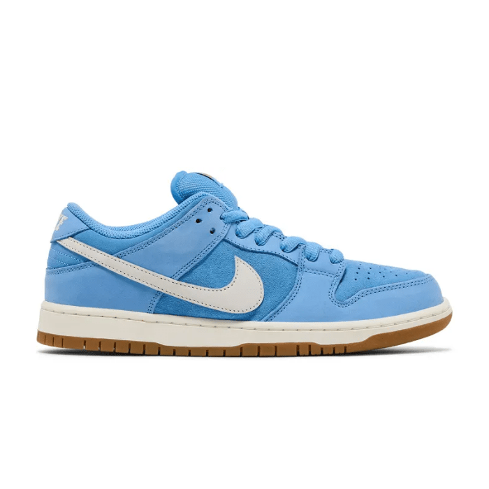 Clean, classic, and built to skate?or flex?the Nike SB Dunk Low Pro ?University Blue Gum? blends heritage vibes with everyday performance. Dressed in a premium University Blue suede upper, this pair stands out with crisp white Swooshes and laces, keeping things fresh and versatile. The iconic gum rubber outsole not only adds timeless style but delivers excellent boardfeel and traction. With a Zoom Air unit in the heel and padded tongue for comfort, this SB Dunk is made for serious skating and serious streetwear fits. Whether you’re hitting the pavement or curating your rotation, this colorway is a low-key essential.