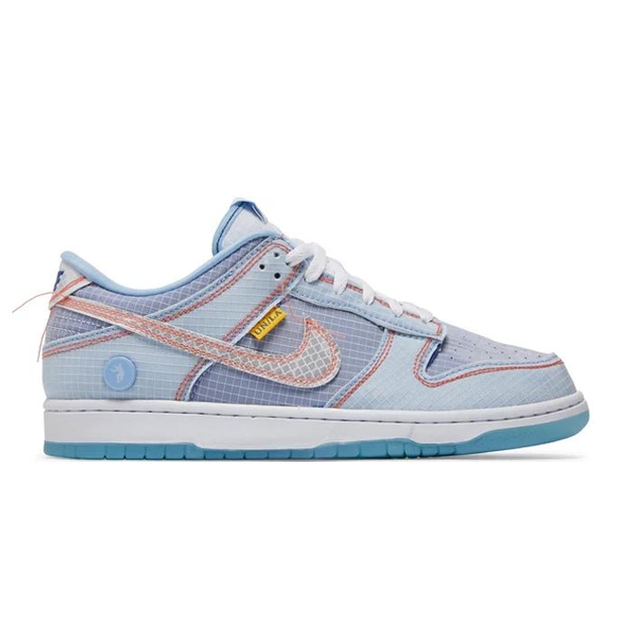 The Union LA x Dunk Low Passport Pack- Argon is a standout sneaker that seamlessly merges heritage aesthetics with modern flair. This limited edition design showcases a unique blend of rich Argon blue leather with supple suede overlays, creating a visually stunning yet understated look. The sneaker?s padded collar and cushioned midsole provide exceptional comfort, making it perfect for all-day wear. A standout design element is the signature Union LA branding on the tongue and heel, adding a touch of exclusivity to this already exceptional sneaker, while the gum outsole ensures durability and grip. With its high-quality materials and thoughtful craftsmanship, this Dunk Low is not just a shoe but a statement piece. Shop authentic limited edition sneakers like Air Jordan, Yeezy, Dunk, and more on Little Wish.
